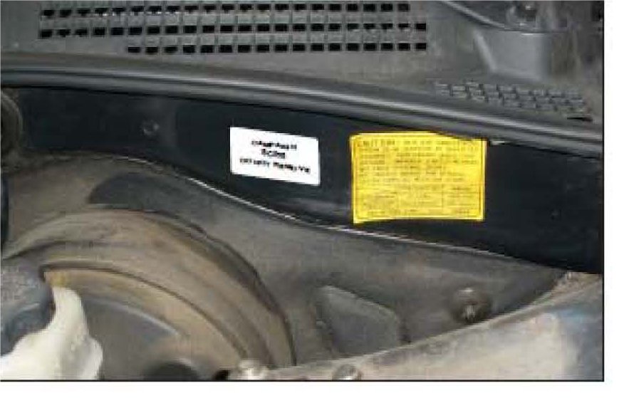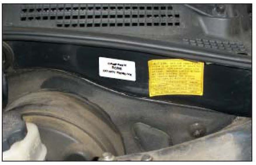 14. Lower the vehicle, open the hood and install the SC075 completion label on the panel above the the master cylinder.
