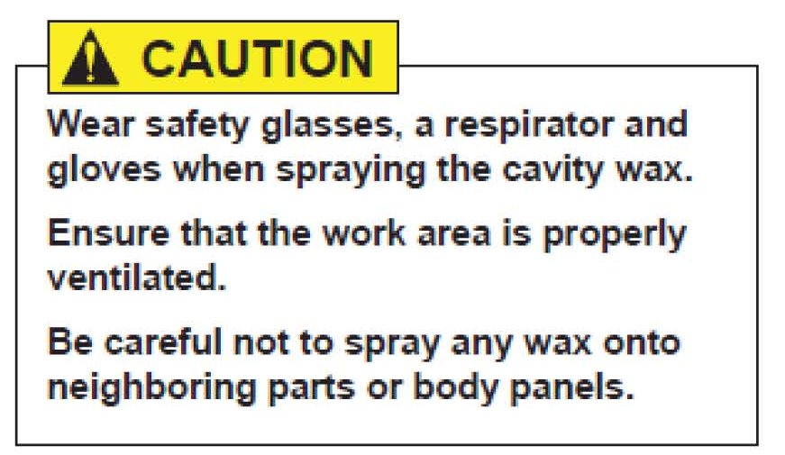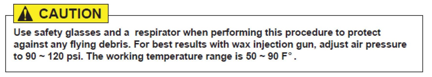 After completing the cavity wax application, continue to blow shop air through the nozzle for a short time to clear any material from the nozzle.