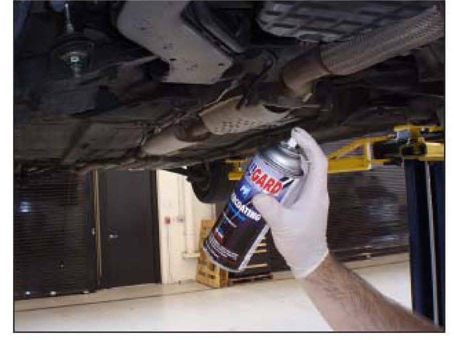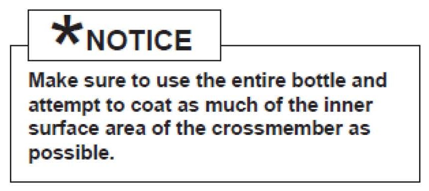 12. Spray undercoating on the underside of the subframe near the four (4) 40 mm access holes and 8 mm drain holes. Do not spray the entire subframe with undercoating.