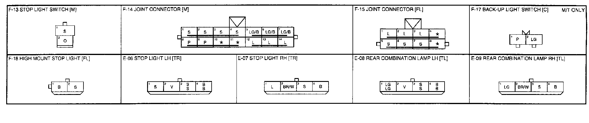 F-2 - Stop Lights, Back-Up Lights Connectors: