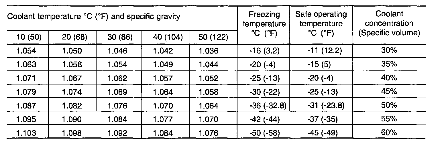 RELATION BETWEEN COOLANT CONCENTRATION AND SPECIFIC GRAVITY
