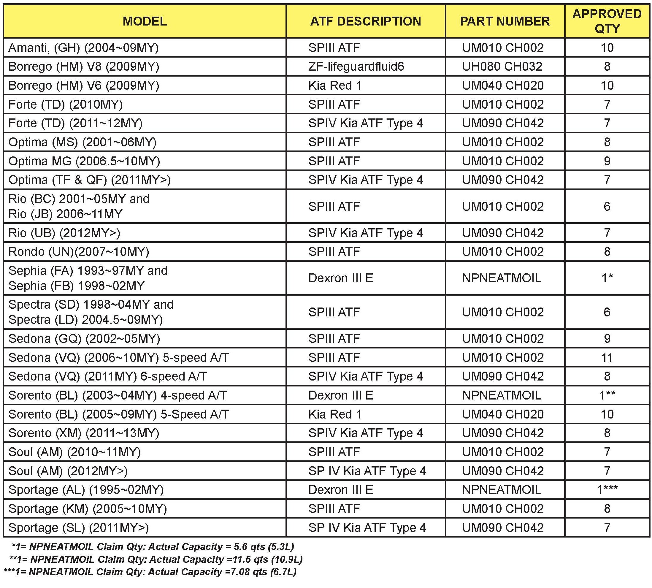 Home >> Kia >> 2002 >> Optima L4-2.4L >> Repair and Diagnosis >> Maintenance >> Fluids >> Technical Service Bulletins >> A/T - Automatic Transmission Fluid Application Guide