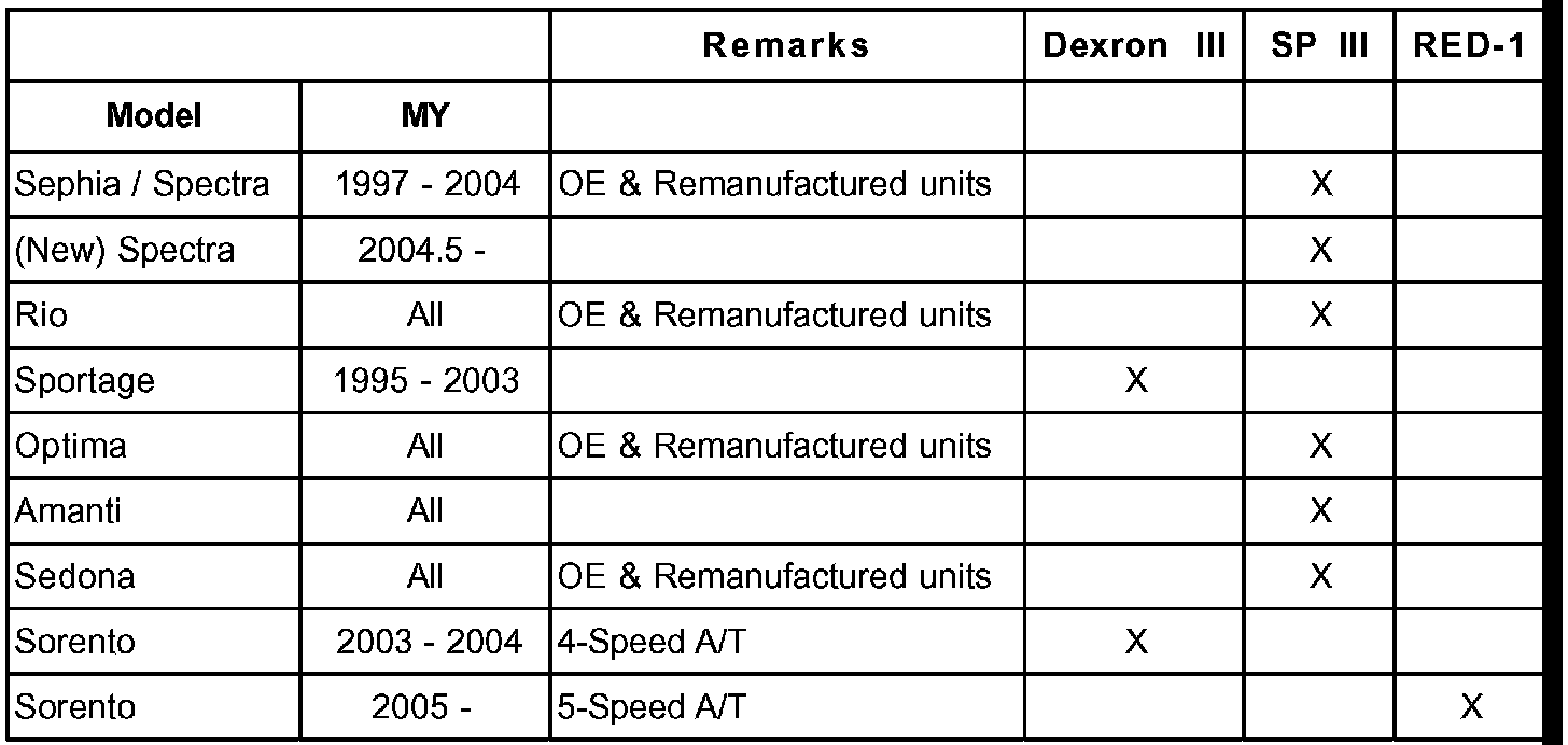 Home >> Kia >> 2002 >> Optima L4-2.4L >> Repair and Diagnosis >> Maintenance >> Fluids >> Technical Service Bulletins >> A/T - Fluid Application Guide