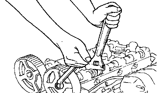 NOTE: Be careful not to damage the cylinder head with the wrench.