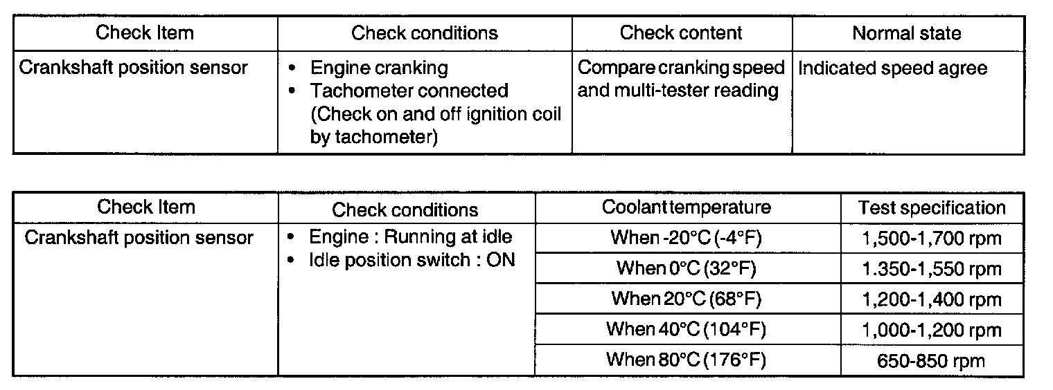 3. If the engine can be run at idle even if the crank angle sensor reading is out of specification, check the following: