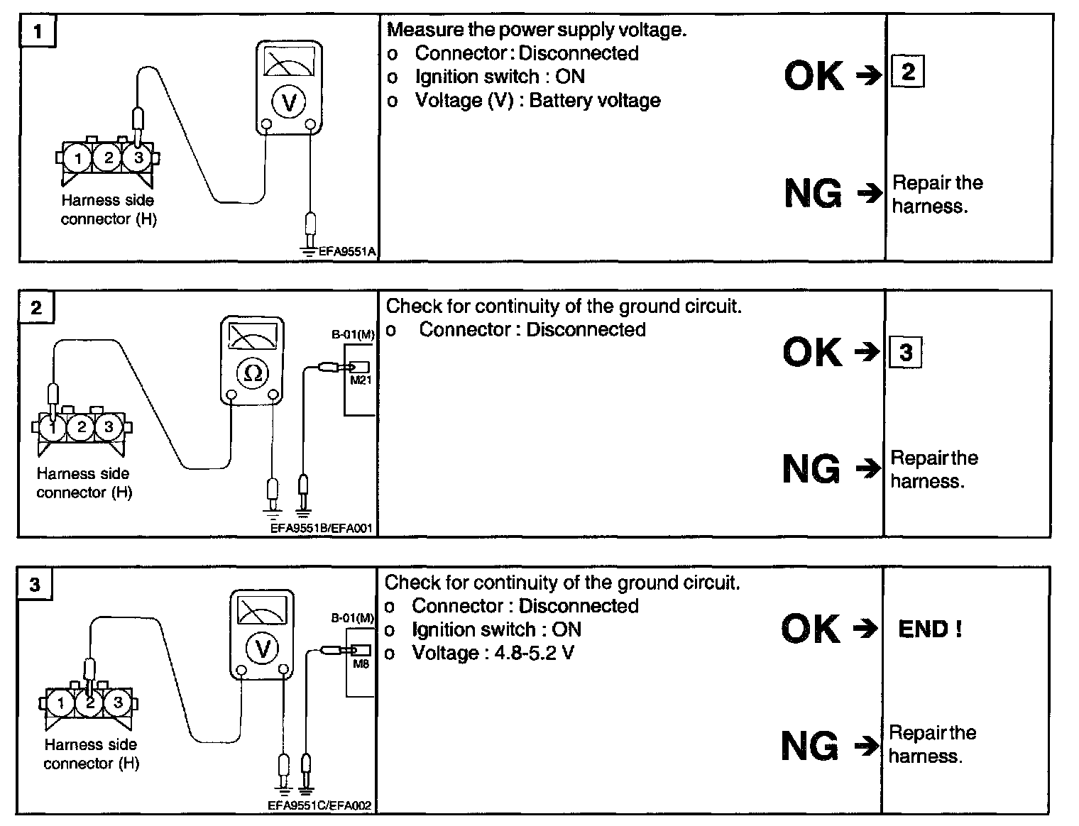 1. It unexpected shocks are felt during driving or the engine stalls suddenly, shake the crankshaft position sensor harness. If this causes the engine to stall, check for poor sensor connector contact.