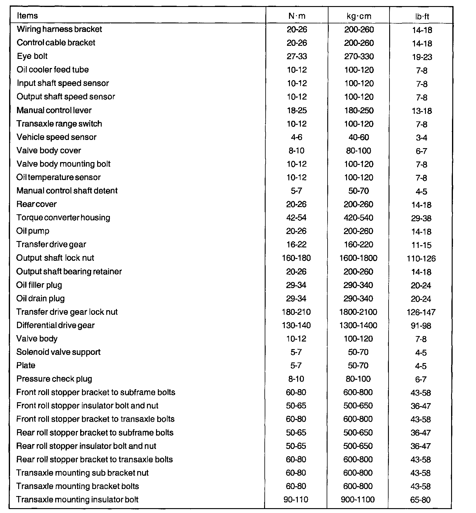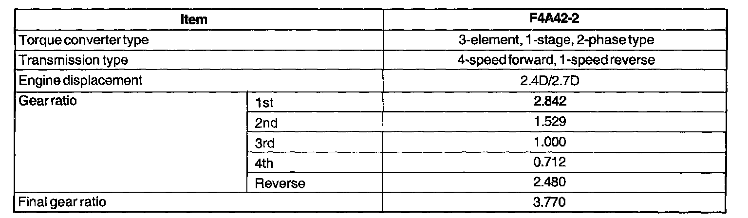 Home >> Kia >> 2002 >> Optima L4-2.4L >> Repair and Diagnosis >> Specifications >> Mechanical Specifications >> Automatic Transmission/Transaxle >> General Specifications