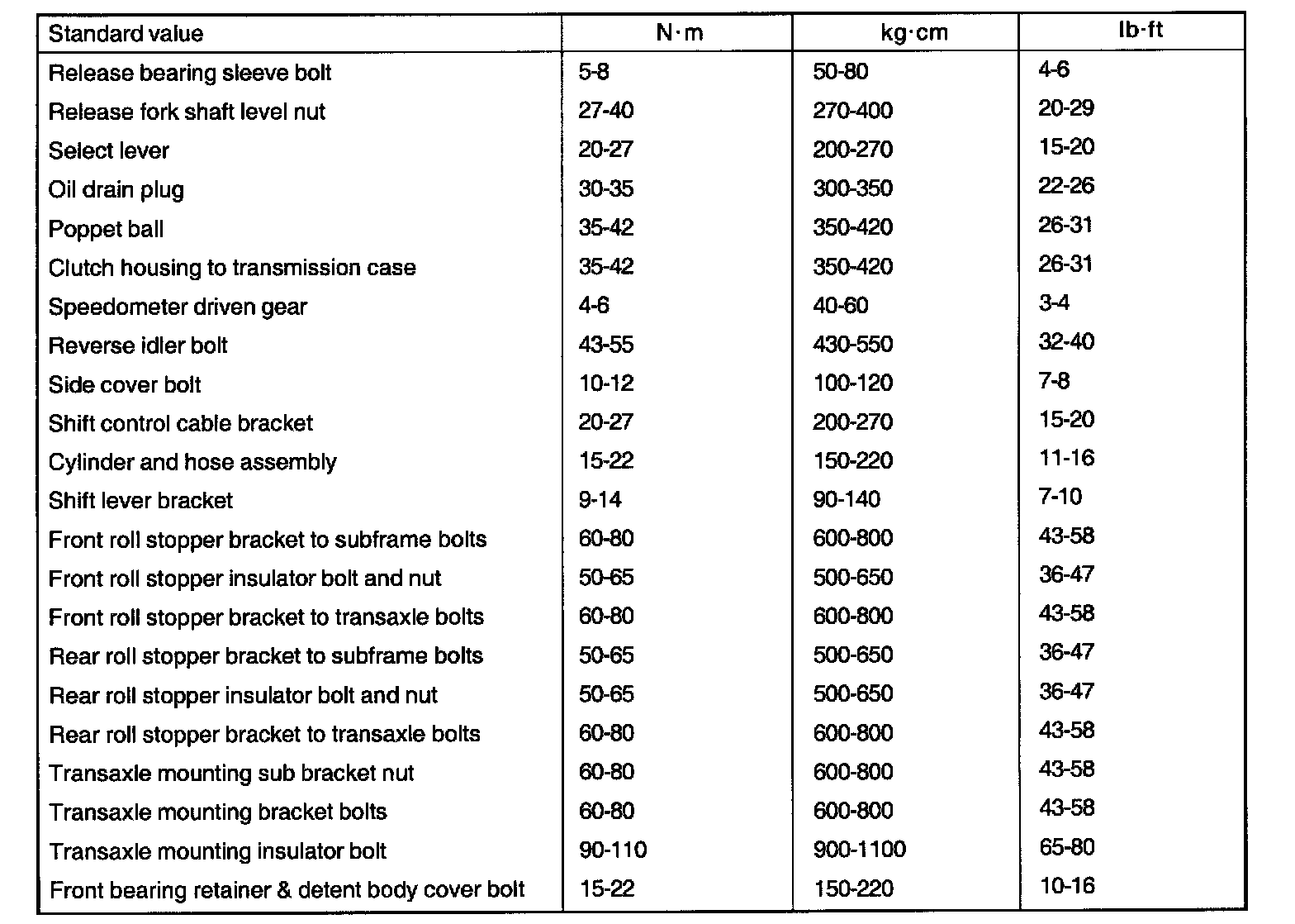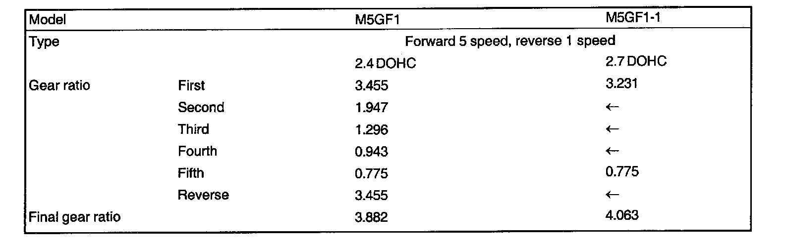 Home >> Kia >> 2002 >> Optima L4-2.4L >> Repair and Diagnosis >> Specifications >> Mechanical Specifications >> Manual Transmission/Transaxle