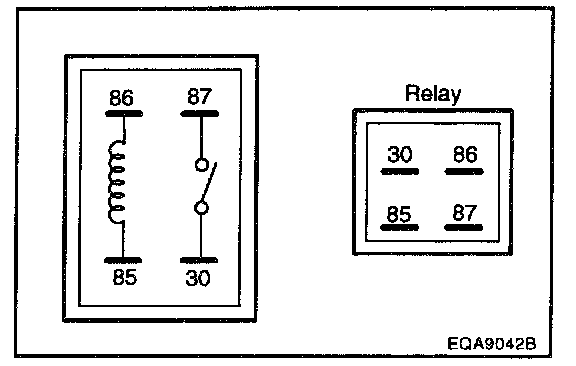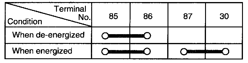 Remove the starter relay and check continuity between the terminals. If the continuity is not as specified, replace the relay.