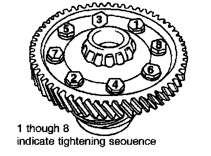 2. Remove the differential drive retaining bolts and remove the differential drive gear from the case.