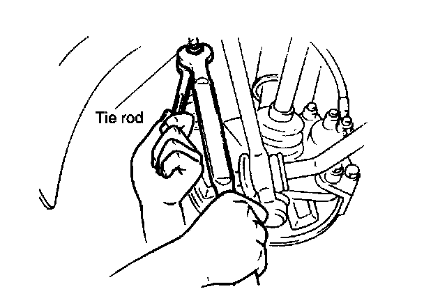 Caution: The left and right tie-rods are both right hand thread. To increase the toe-in, turn the right tie-rod toward the front of the vehicle, and turn the left tie-rod by the same amount toward the rear. One turn of the tie-rod (both sides) changes the toe-in by about 0.24 inch (6 mm). Adjust the toe-in after adjusting the steering angle.