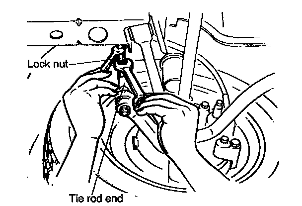 To adjust the toe-in, loosen the left and right tie-rod lock nuts and turn the tie-rods by the same amount.