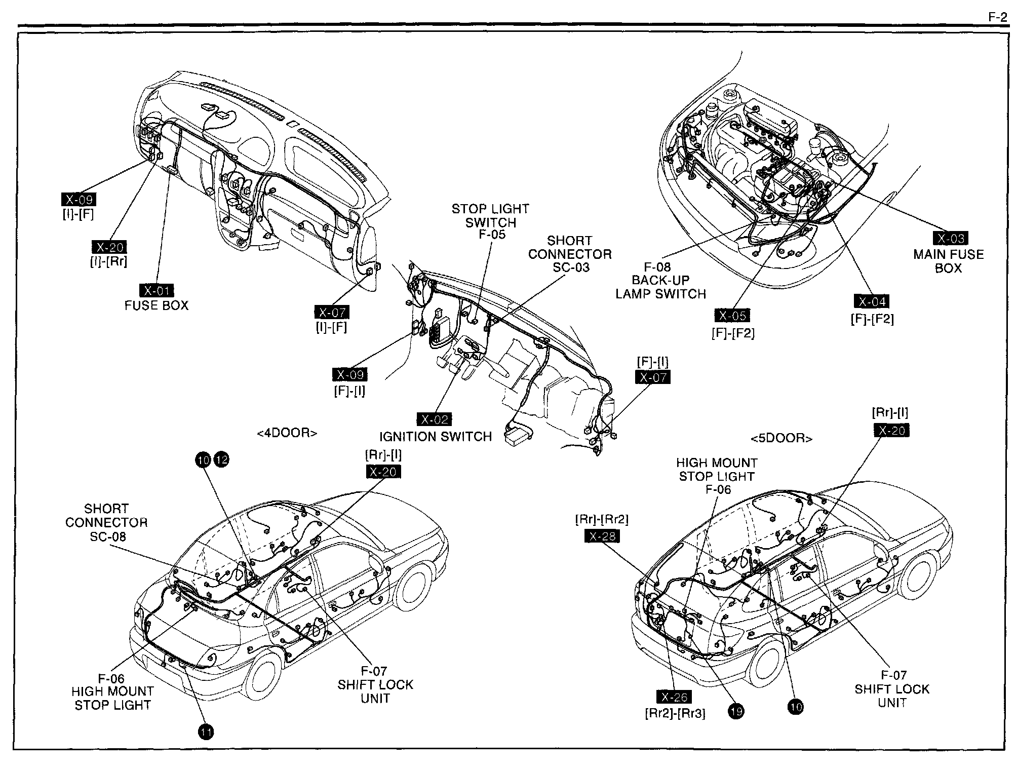 F-2 - Stop Lights, Shift Lock Unit Harness/Connector Symbols: