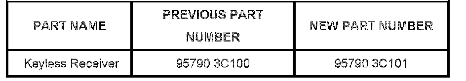 While customers typically are still able to lock an unlock the doors with the key and/or with the interior door lock switch, they are no longer able to operate the door locks with their RKE transmitters. To reduce these incidences, Kia has redesigned the remote keyless entry receiver memory function with part number 95790 3C101.