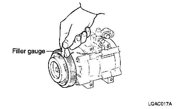 1. Check the air gap between the clutch hub and pulley contact surface using a filler gauge.