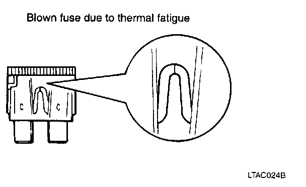 When a fuse is blown, there are two probable causes. The two causes can easily be determined by a visual check after removing the fuses.