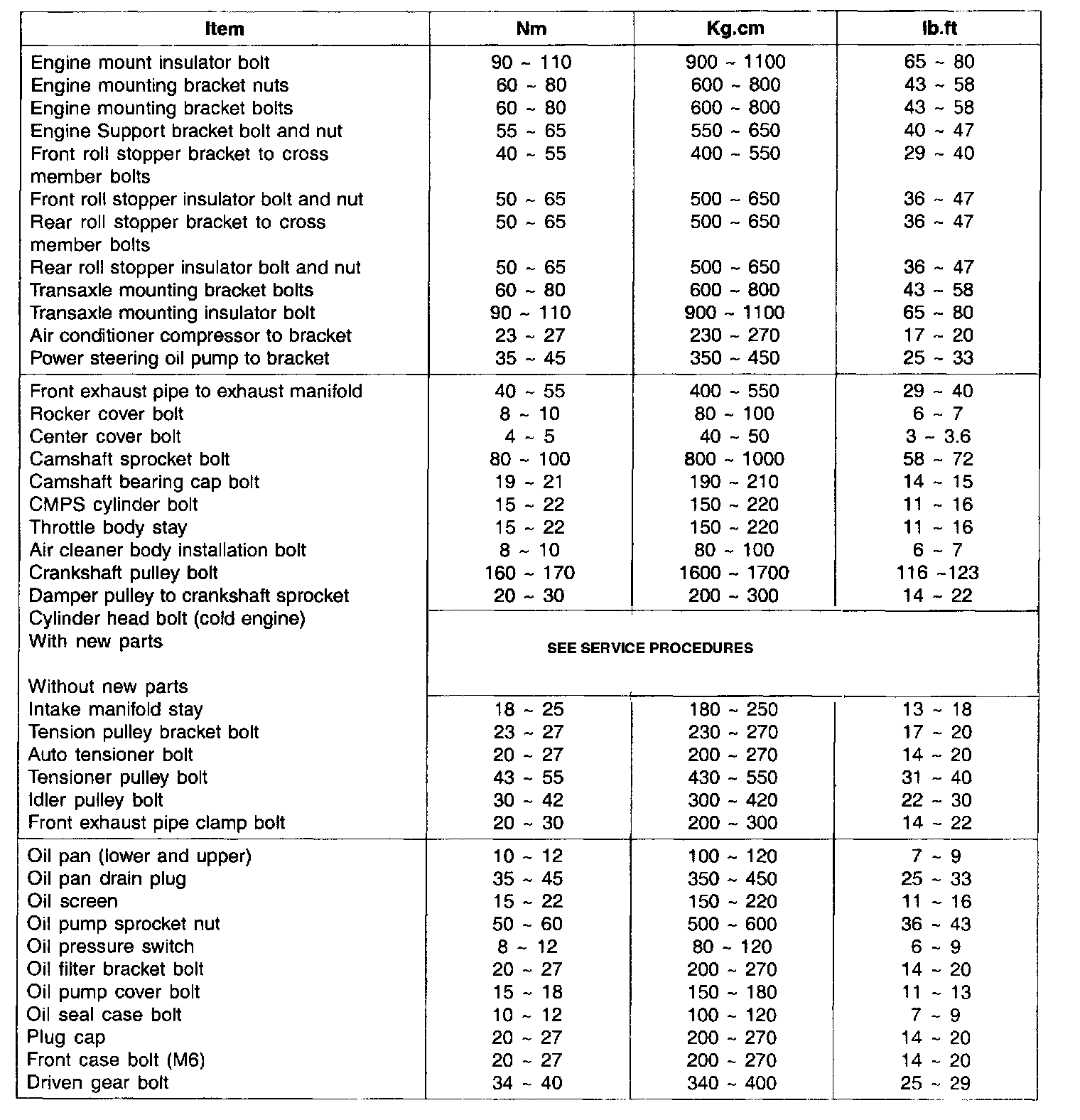 Torque Specifications