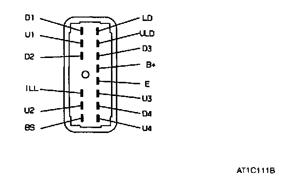 2. Check for continuity between the terminals. If continuity is not as specified in the table, replace the power window switch.
