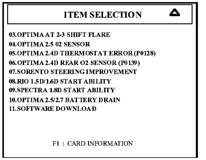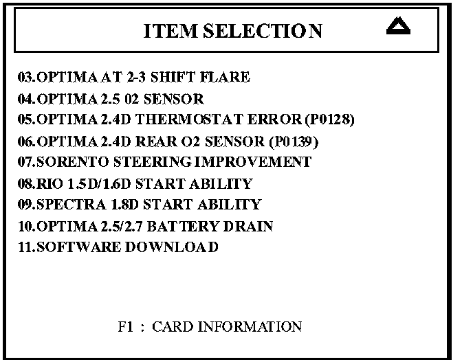 5. Turn Hi-Scan Pro on and select "10. OPTIMA 2.5/2.7 BATTERY DRAIN" and press the "ENTER" key.