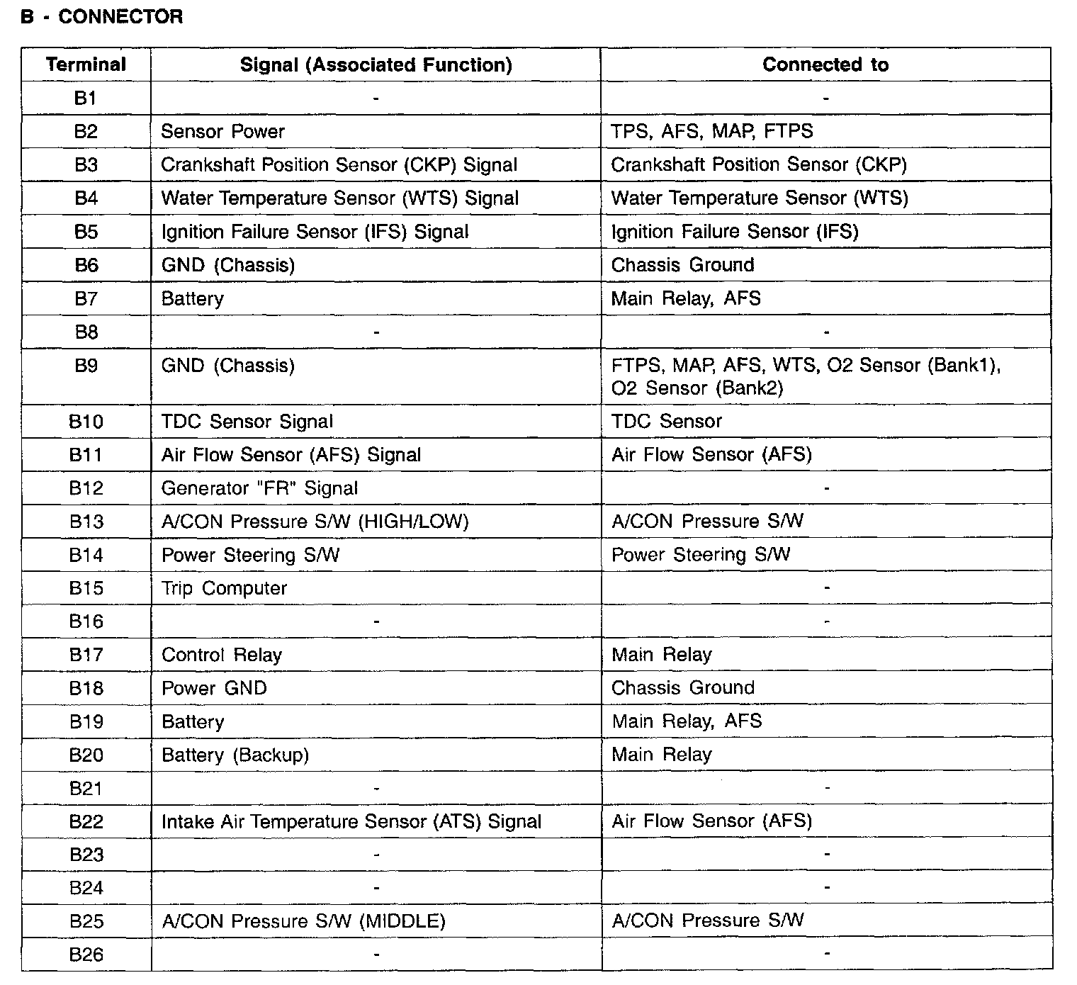 Connector B - (B1-B26):
