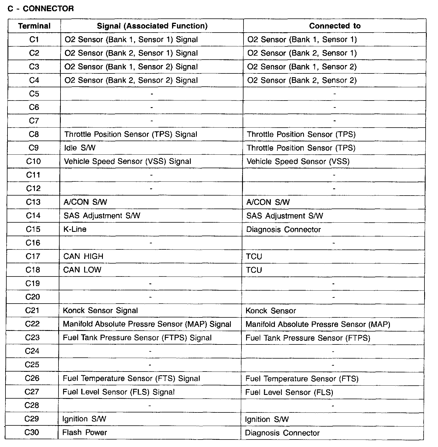Connector C - (C1-C30):
