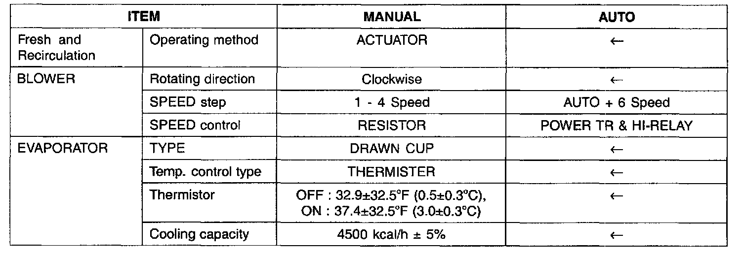 General Specifications (Blower And Evaporator Unit):