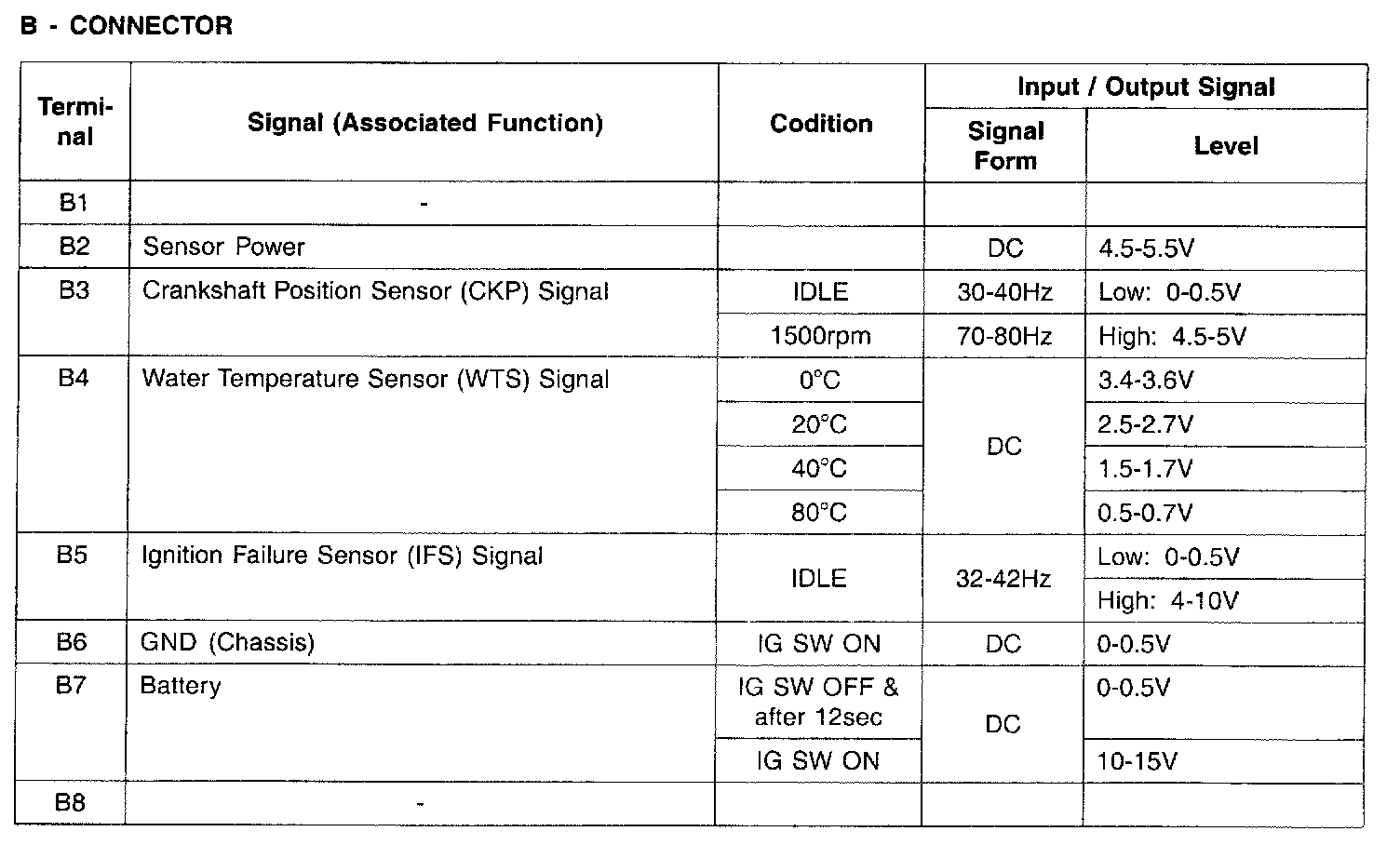 Connector B - (B1-B8):