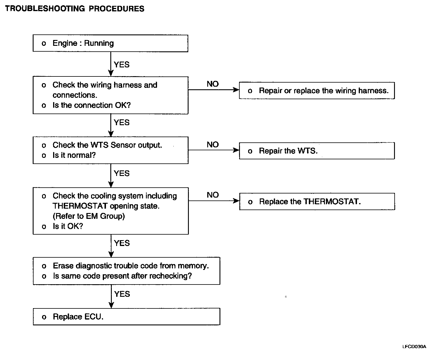 If the fast idle speed is not adequate or the engine gives oft dark smoke during warm-up, the Water Temperature Sensor (WTS) might be the cause.