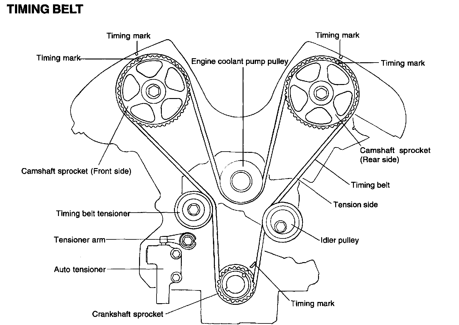 Incorrect removal or installation of the timing belt can result in damage to internal engine components.