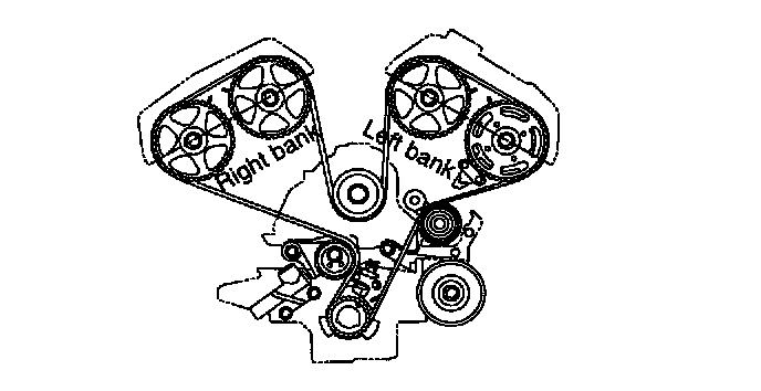 Crankshaft sprocket -> Idler pulley -> Left bank exhaust camshaft sprocket -> Left bank intake camshaft sprocket -> Water pump pulley -> Right bank intake camshaft sprocket -> Right bank exhaust camshaft sprocket -> Tensioner pulley.