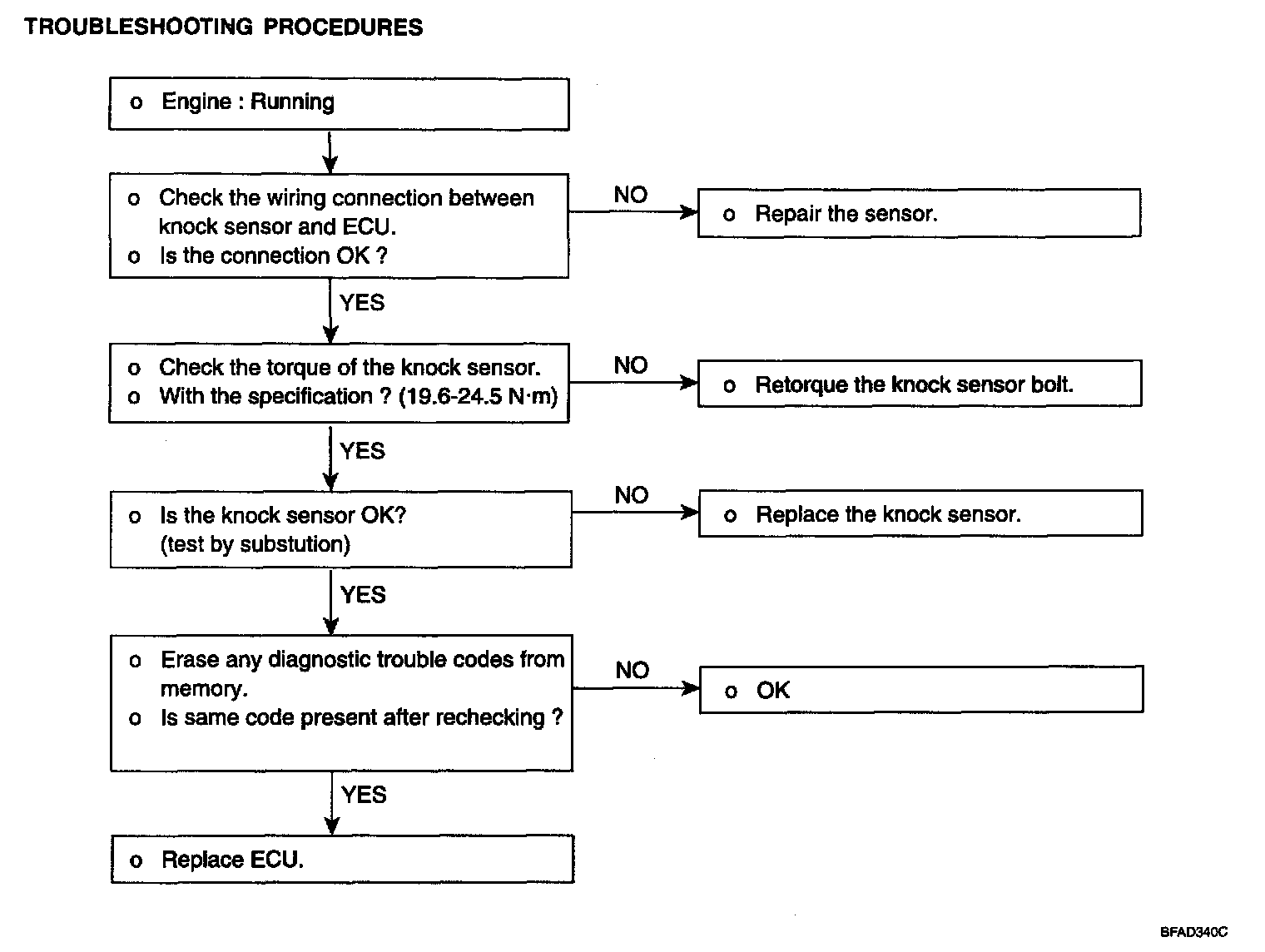 Knock sensor: 19.6 - 24.5 Nm (200 - 250 kg.cm, 14.5 - 18.1 lb.ft)