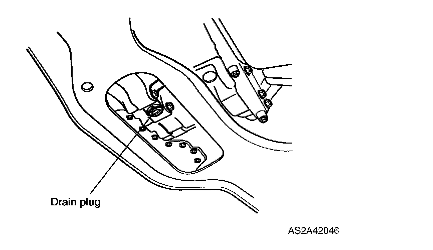 2. Remove auto transaxle drain plug and allow automatic transaxle fluid to fully drain.