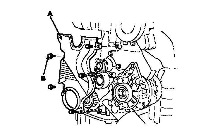 10. Remove the 4 bolts(B) and timing belt upper cover (A).