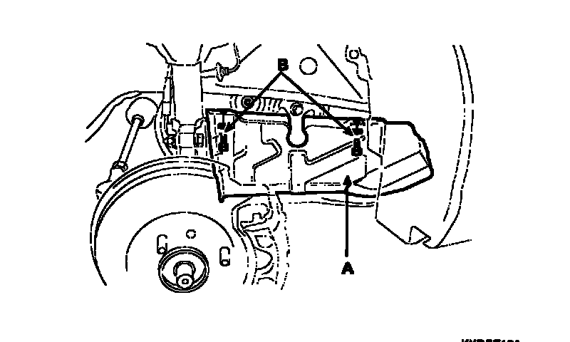 3) Remove the bolt (B) and engine support bracket stay plate (A).
