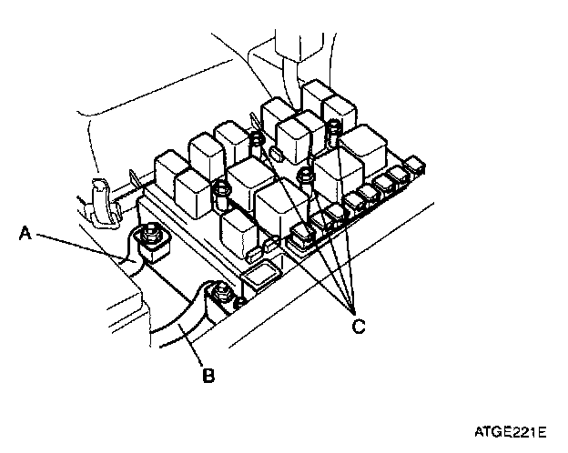 3. Loosen the relay connectors mounting bolts (C).