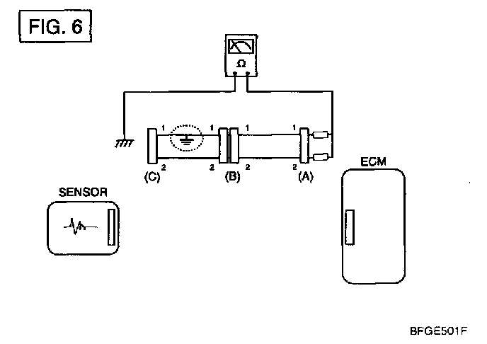 a. Disconnect connectors (A), (C) and measure for resistance between connector (A) and Chassis Ground as shown in [FIG.6].