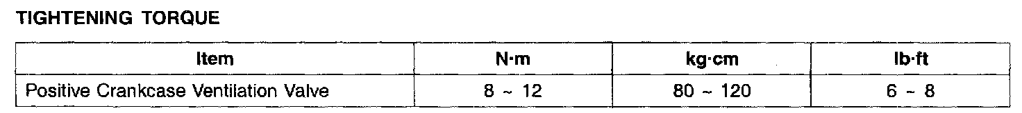 Positive Crankcase Ventilation: Specifications