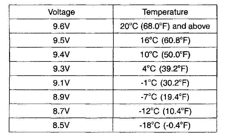 - If the voltage is less than shown in the table, replace the battery.
