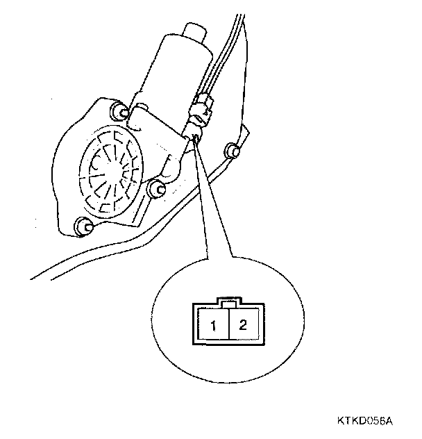 3. Connect the motor terminals directly to battery voltage (12V) and check that the motor operates smoothly. Next, reverse the polarity and check that the motor operates smoothly in the reverse direction. If the operation is abnormal, replace the motor.