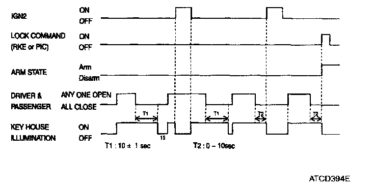 1. While IGN KEY is inserted into the key cylinder or ACC is on or IGN2 is on or IGN1 is on, if driver side door is opened. Key operated warning starts.