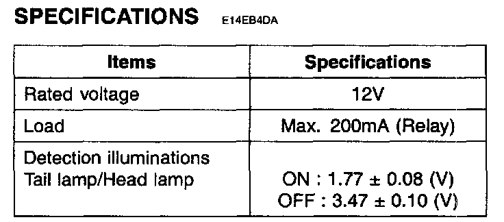 Specifications - Auto Lighting Control System: