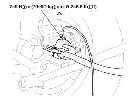 3. Loosen the right-rear brake bleed screw to allow air to escape from the system. Then tighten the bleed screw securely.