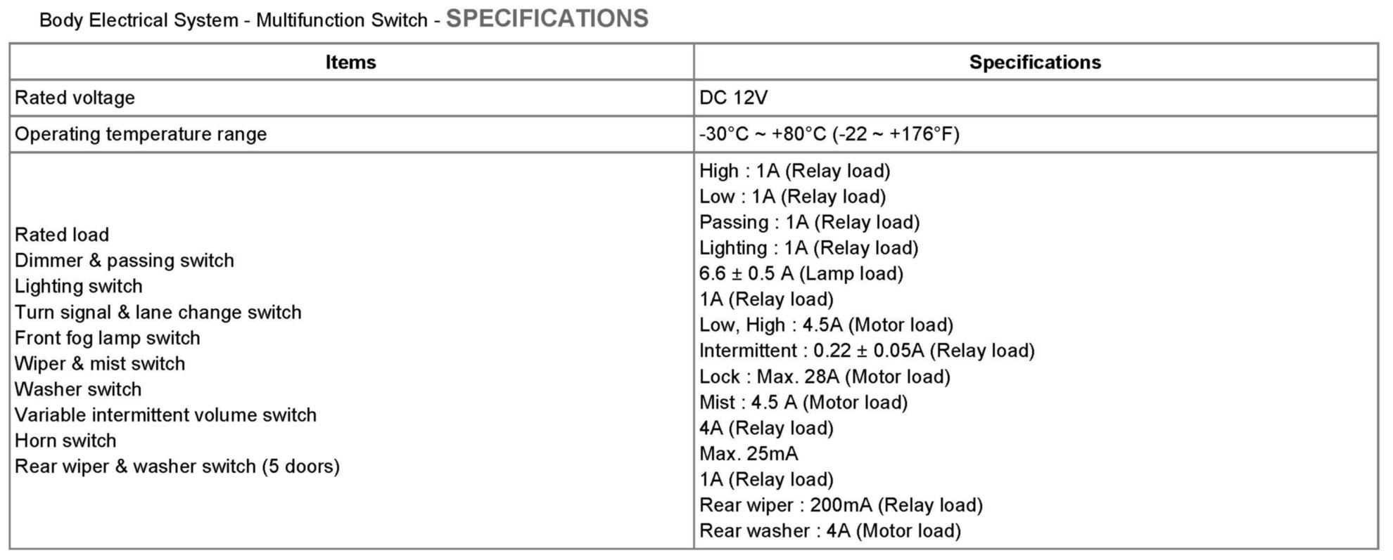 Electrical Specifications