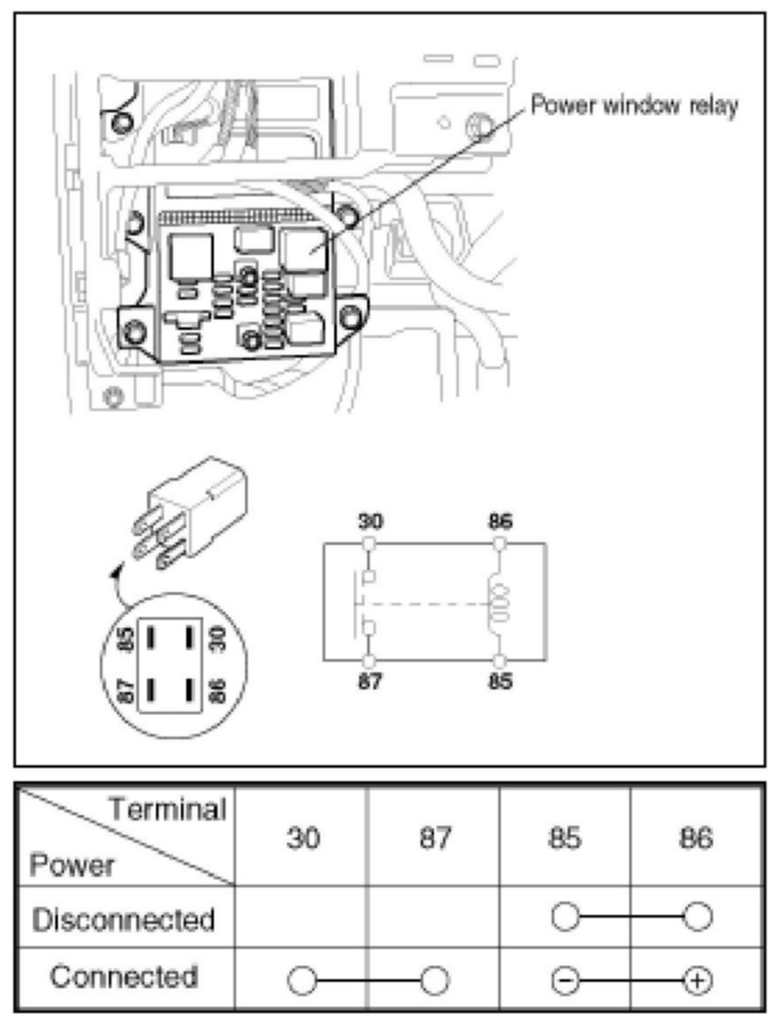 Home >> Kia >> 2005 >> Spectra L4-2.0L >> Repair and Diagnosis >> Windows and Glass >> Windows >> Power Window Relay >> Testing and Inspection
