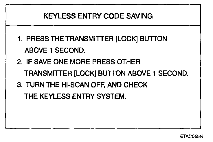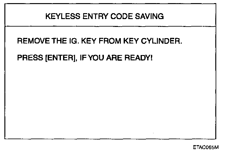 4. After removing the ignition key from key cylinder, push "ENTER" key to proceed to the next mode for code saving.
