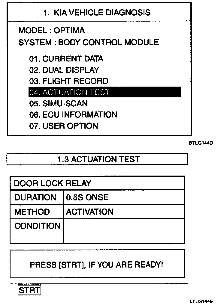 3. To consult the present input/out value of BCM, "02. INPUT/OUTPUT MONITORING". It provides information of BCM input/output conditions of power supply, turn signal/brake lamp, headlamp, door, locks, outside mirror, wiper, auto-light and transmitters etc.