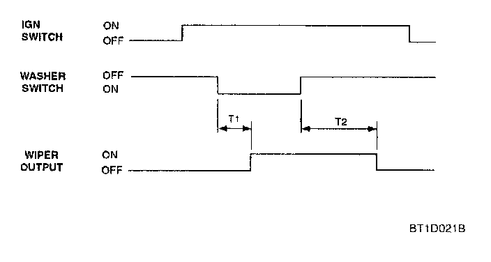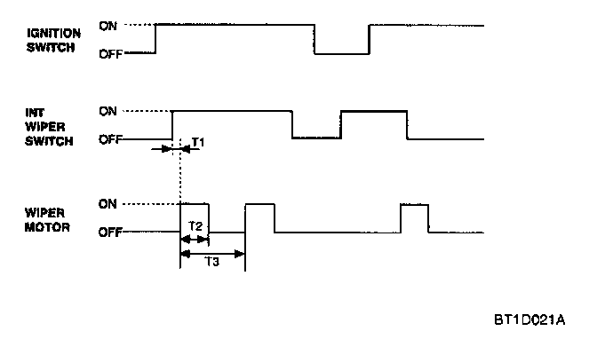 T2 : Time of wiper motor 1 rotation (0.6 - 0.8 sec.).