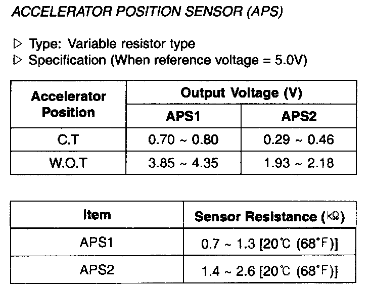 Accelerator Pedal Position Sensor: Specifications