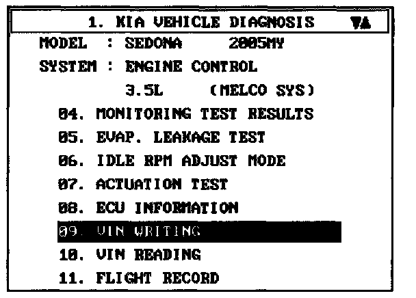 VIN PROGRAMMING PROCEDUREVIN (Vehicle Identification Number) is a number that has the vehicle's information (Maker, Vehicle Type, Vehicle Line/Series, Body Type, Engine Type, Transmission Type, Model Year, Plant Location and so forth. When replacing an ECM, the VIN must be programmed in the ECM. If there is no VIN in ECM memory, the fault code (DTC P0630) is set.