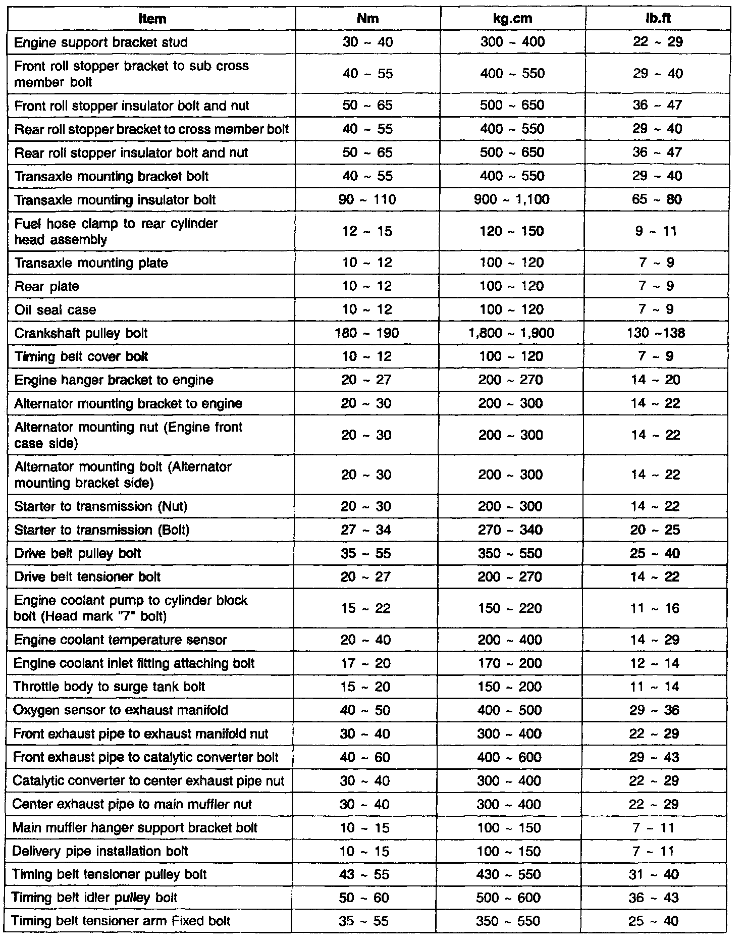 Torque Specifications